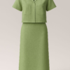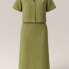 Tailored Olive Green piece set with a cropped shirt and high-waisted midi skirt , sleek, structured, and standout.